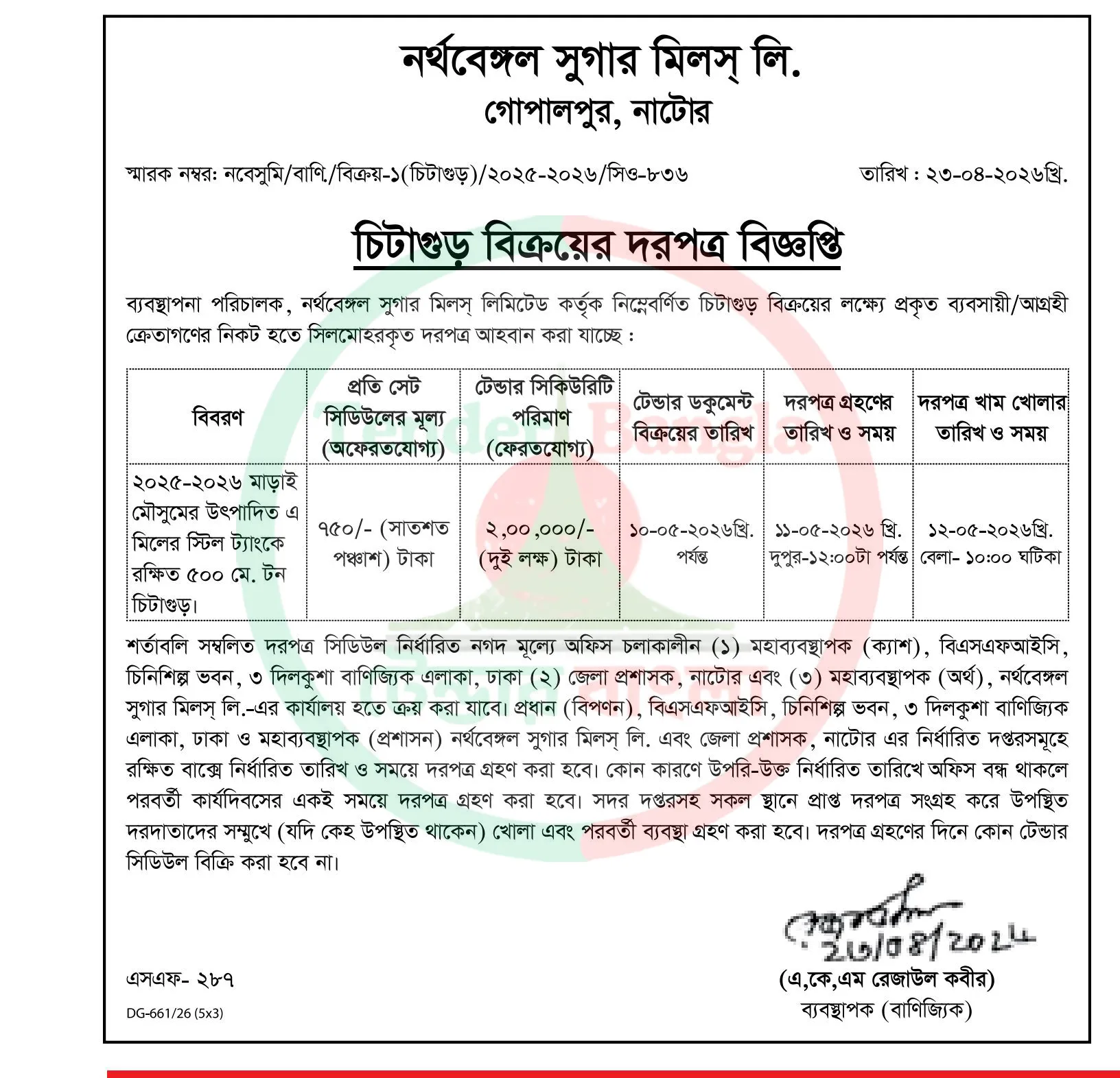 Title: চিটাগুড় বিক্রয়ের দরপত্র বিজ্ঞপ্তি