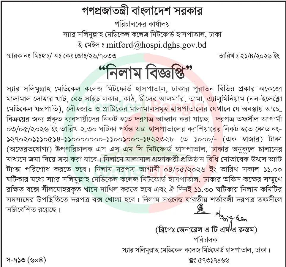 Title: বিভিন্ন ধরনের মালামাল নিলাম বিজ্ঞপ্তি