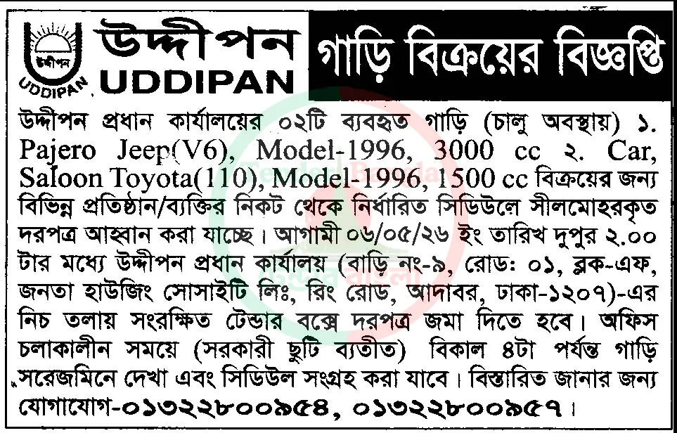 Title: গাড়ী নিলাম বিজ্ঞপ্তি