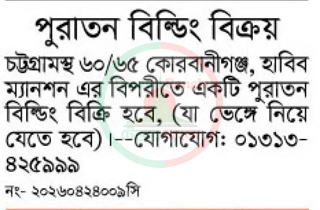 Title: পুরাতন বিল্ডিং বিক্রয় বিজ্ঞপ্তি