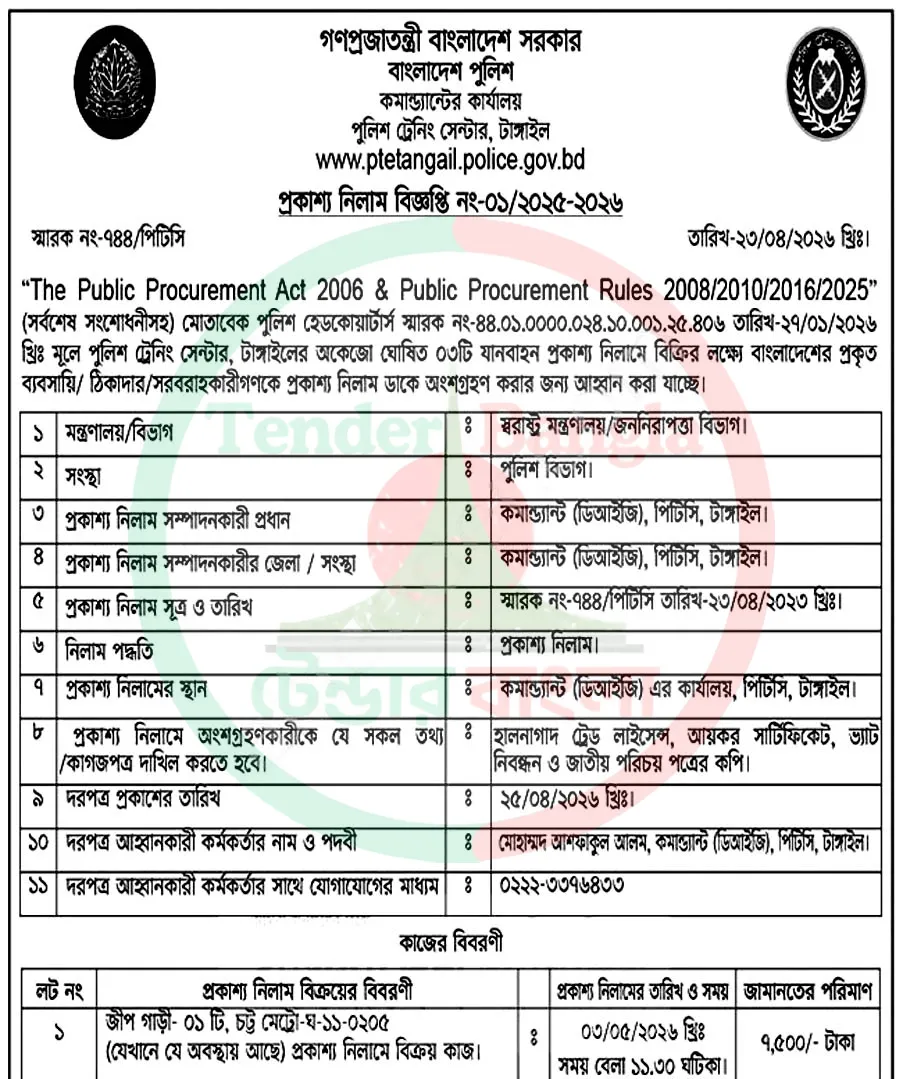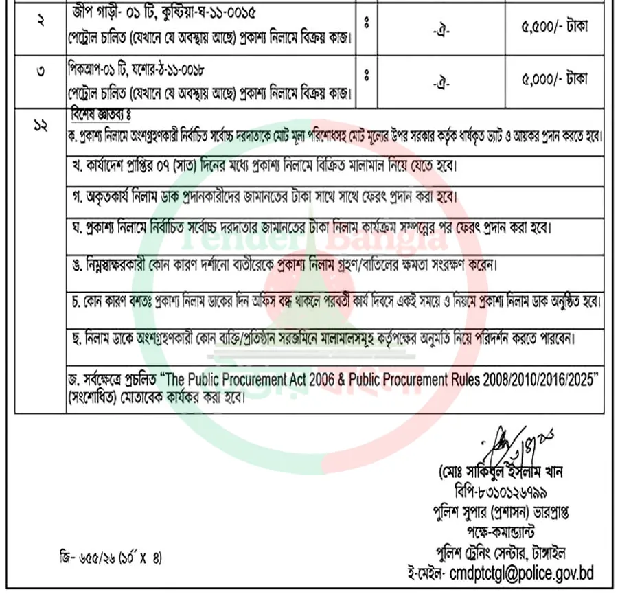 Title: অকেজো যানবাহন প্রকাশ্য নিলাম বিজ্ঞপ্তি পুলিশ