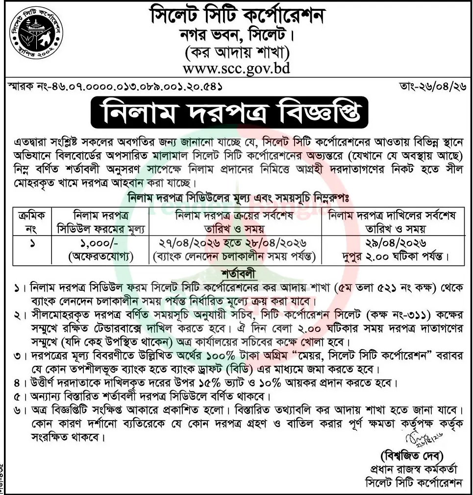 Title: বিভিন্ন মালামাল নিলাম দরপত্র বিজ্ঞপ্তি সিটি কর্পোরেশন