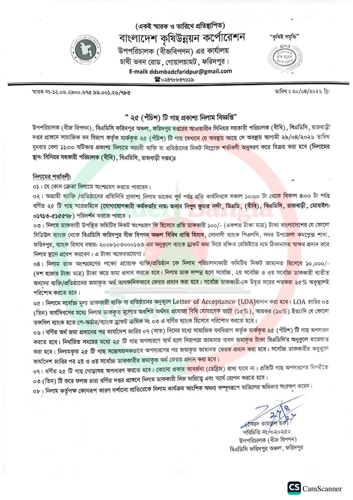 Title: গাছ প্রকাশ্য নিলাম বিজ্ঞপ্তি বিএডিসি