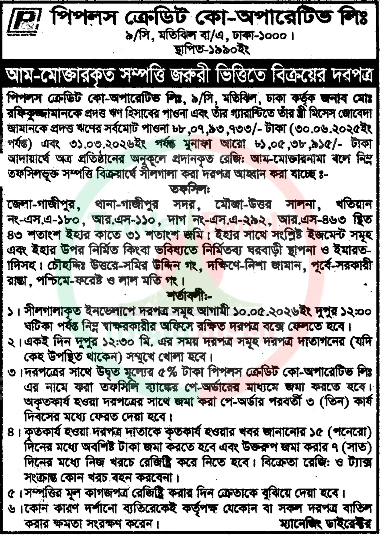 Title: সম্পত্তি জরুরী বিক্রয়ের দরপত্র