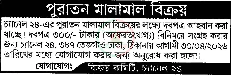 Title: পুরাতন মালামাল বিক্রয়ের বিজ্ঞপ্তি চ্যানেল ২৪