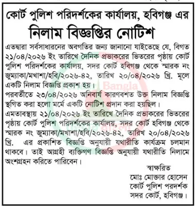 Title: যথাসময়ে নিলাম হবার নোটিশ কোর্ট পুলিশ