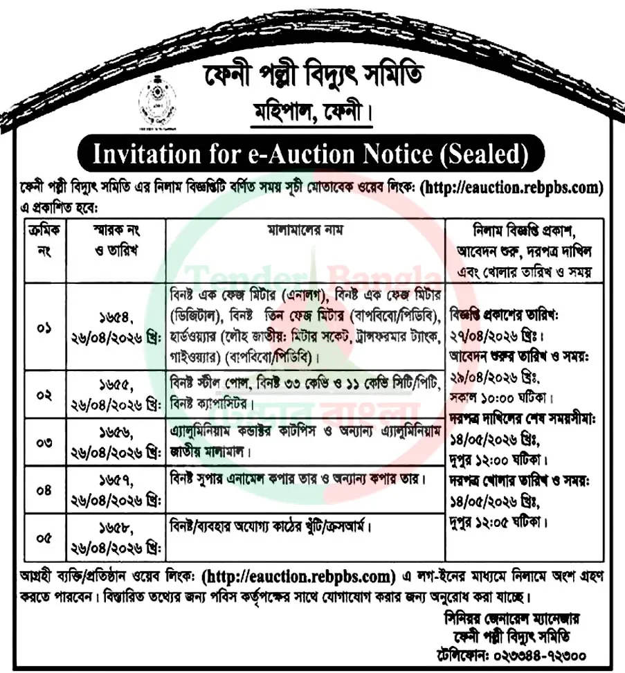 Title: বিভিন্ন ধরনের মালামাল ই অকশন বিজ্ঞপ্তি পল্লী বিদ্যুৎ সমিতি