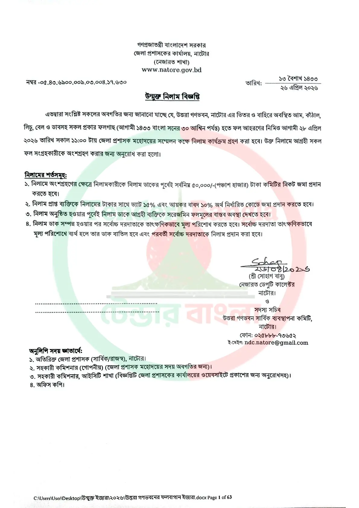 Title: বিভিন্ন ফল উন্মুক্ত নিলাম বিজ্ঞপ্তি