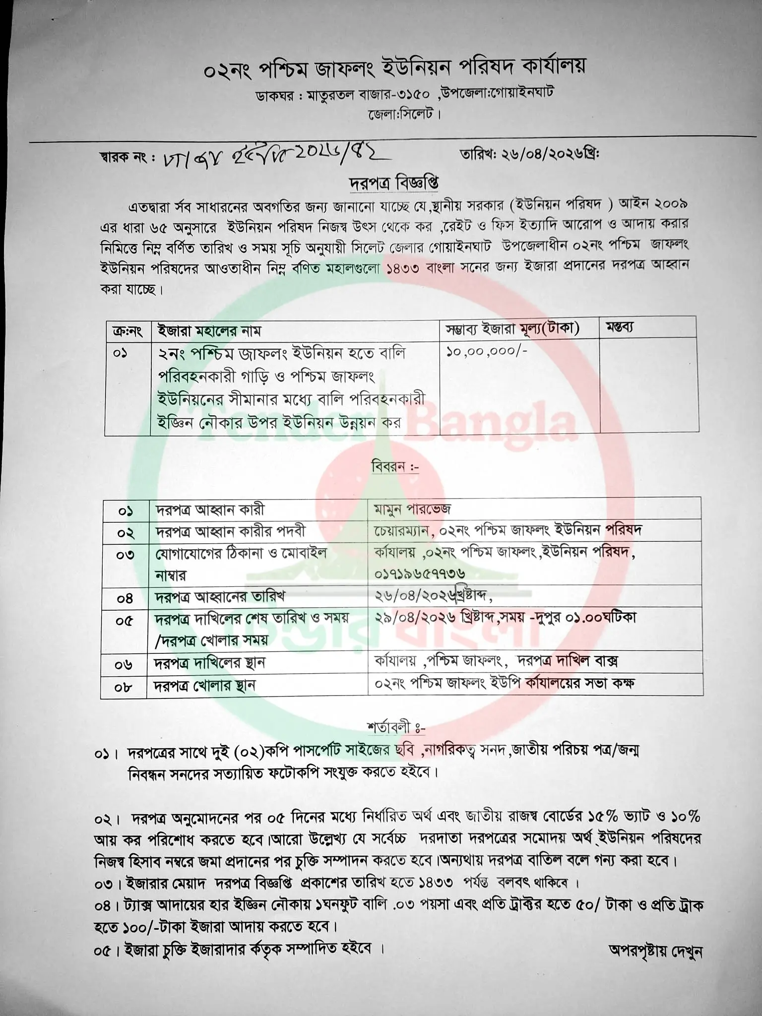 Title: ইজারা নিলাম বিজ্ঞপ্তি