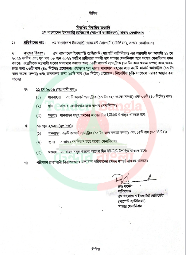 Title: যানবাহন ভাড়ার বিজ্ঞপ্তি সাভার সেনানিবাস