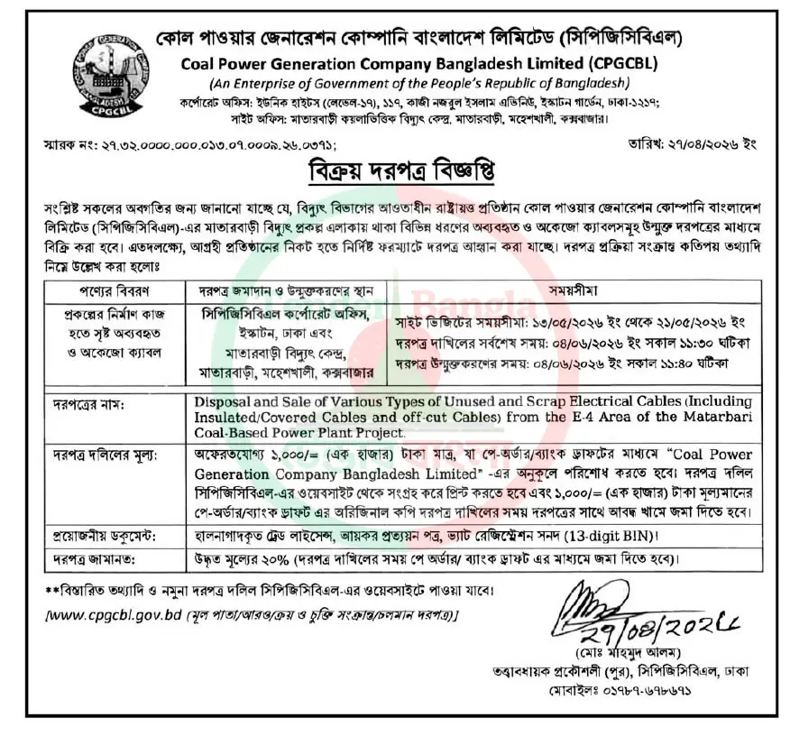 Title: বিভিন্ন ধরনের মালামাল মালামাল নিলাম বিজ্ঞপ্তি