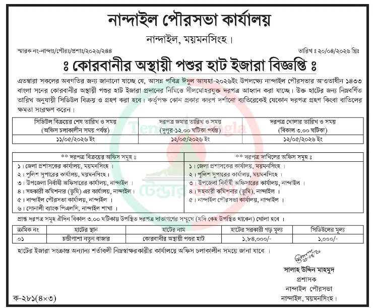 Title: কোরবাণীর অস্থায়ী পশুর হাট ইজারা বিজ্ঞপ্তি