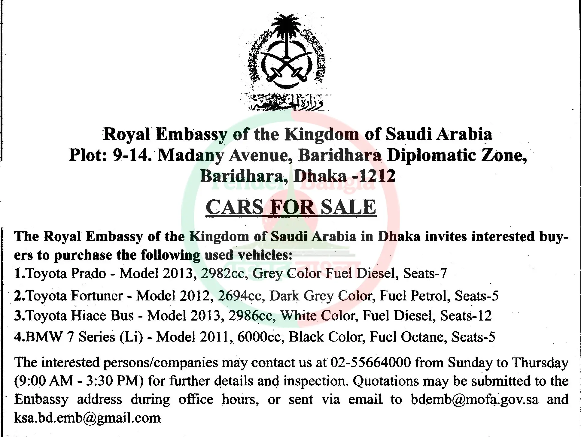 Title: যানবাহন বিক্রয় বিজ্ঞপ্তি সৌদি এম্বেসি