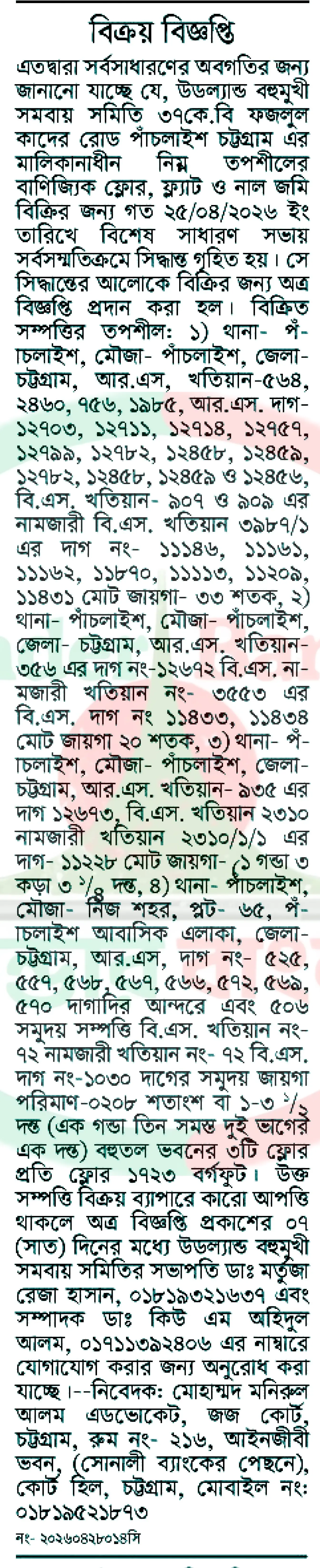 Title: সম্পত্তি বিক্রয় বিজ্ঞপ্তি