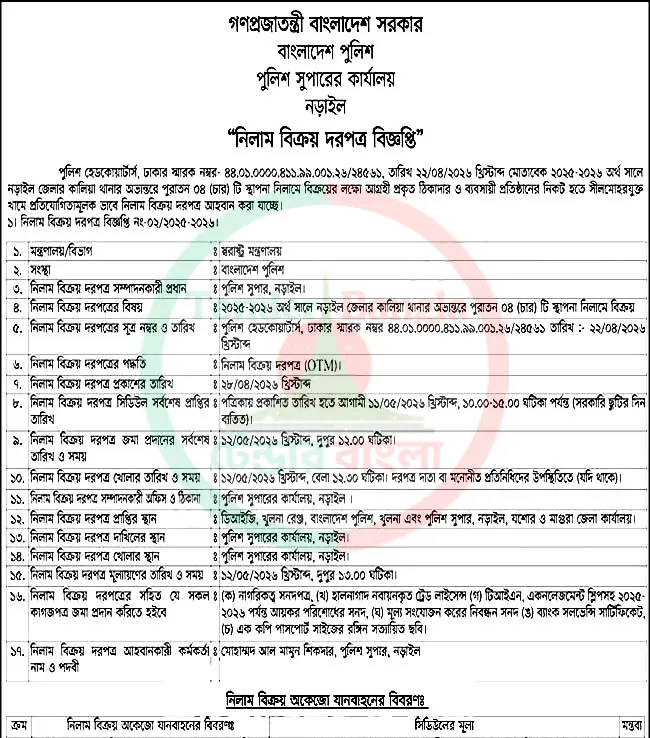 Title: পুরাতন ভবন নিলাম বিজ্ঞপ্তি পুলিশ