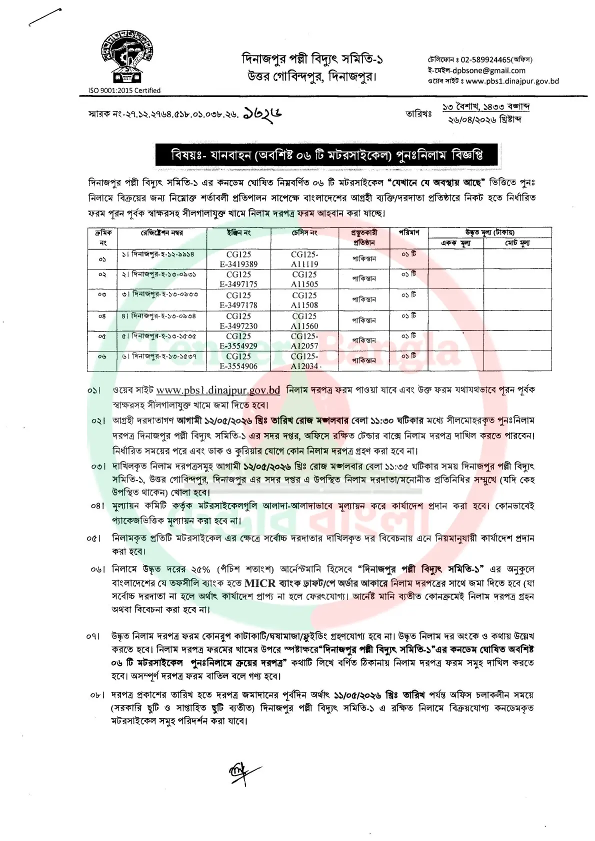 Title: মটরসাইকেল পুনঃনিলাম বিজ্ঞপ্তি পল্লী বিদ্যুৎ সমিতি