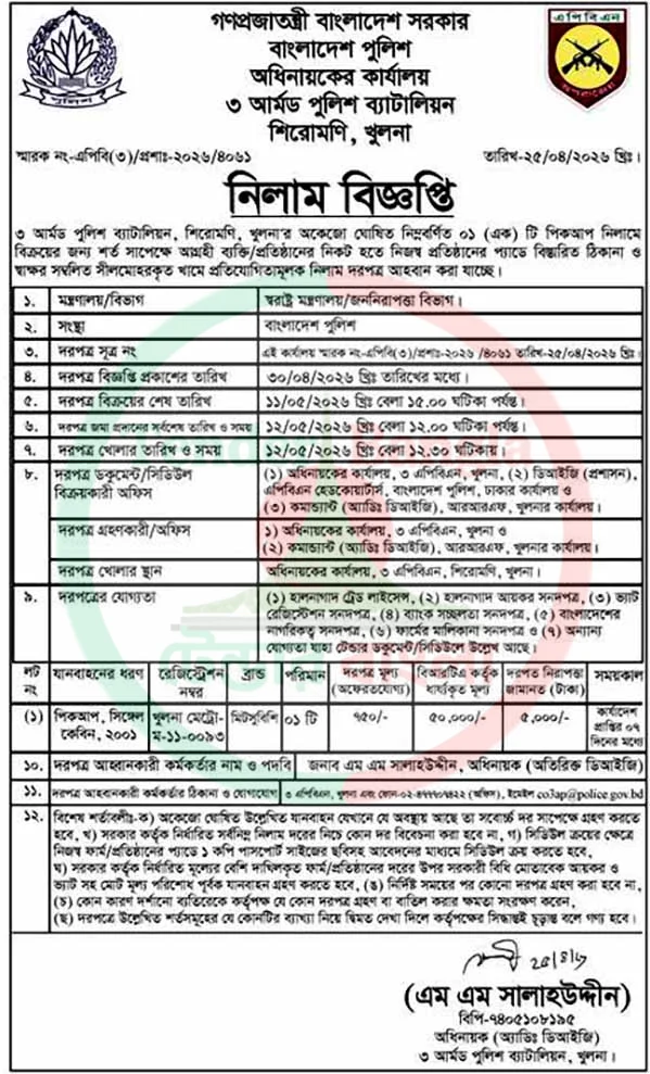 Title: অকেজো গাড়ি নিলাম বিজ্ঞপ্তি পুলিশ