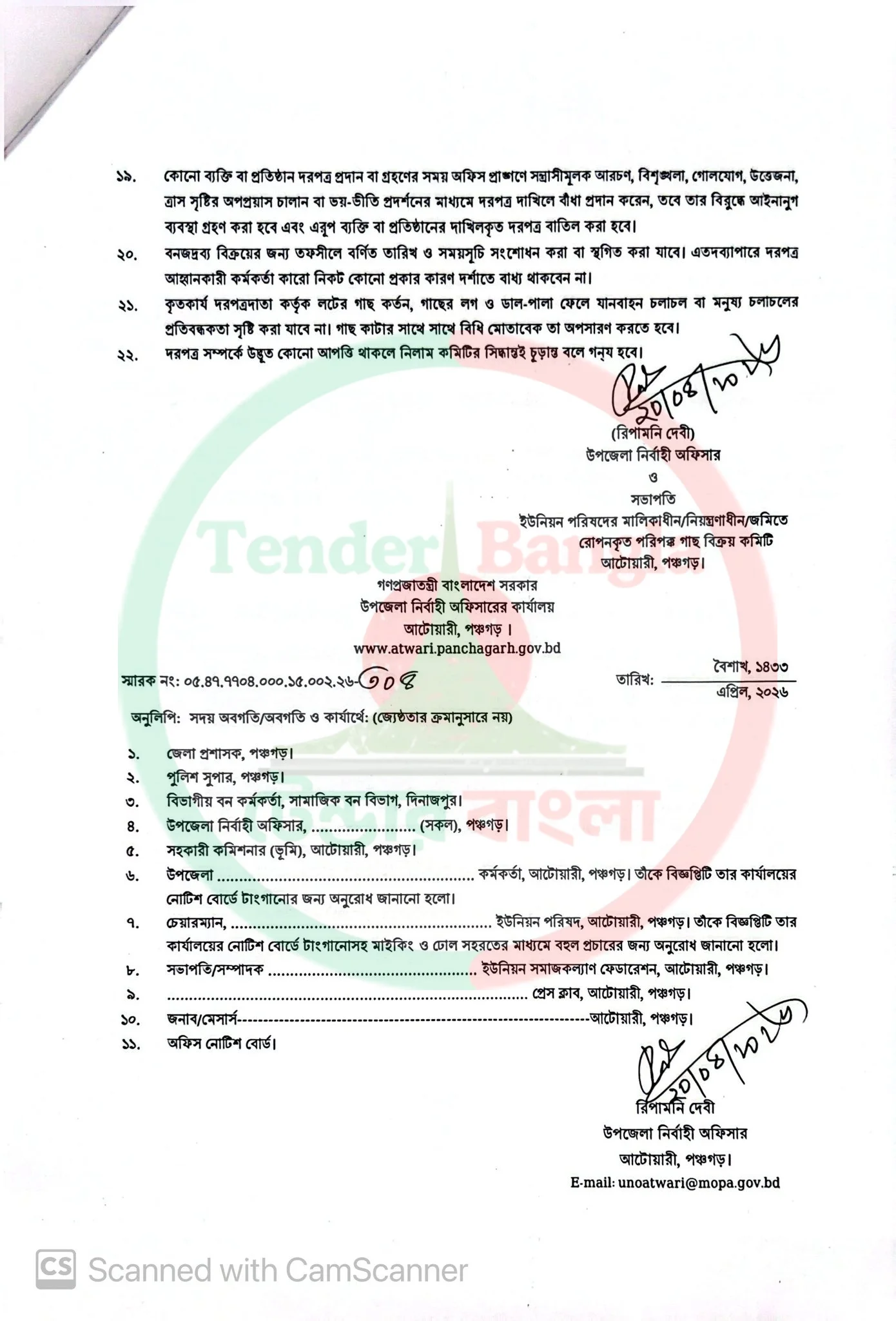 Title: বিভিন্ন প্রকার গাছ নিলাম বিজ্ঞপ্তি উপজেলা নির্বাহী অফিসারের কার্যালয় অটোয়ারী