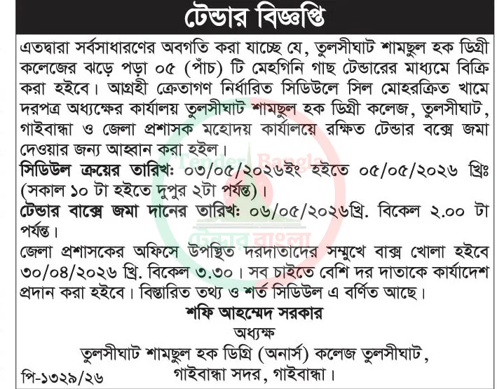 Title: গাছ বিক্রয়ের টেন্ডার বিজ্ঞপ্তি