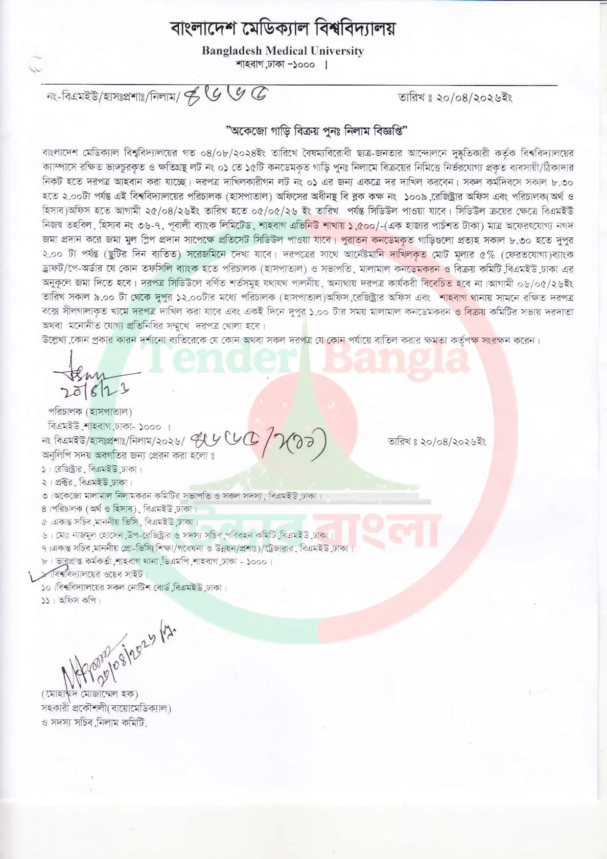 Title: অকেজো গাড়ি পুনঃ নিলাম বিজ্ঞপ্তি