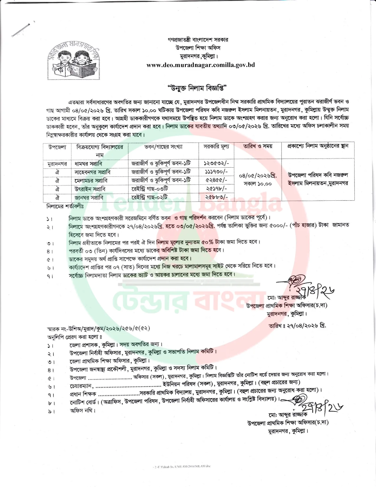 Title: পুরাতন ভবন নিলাম বিজ্ঞপ্তি উপজেলা শিক্ষা অফিস মুরাদনগর