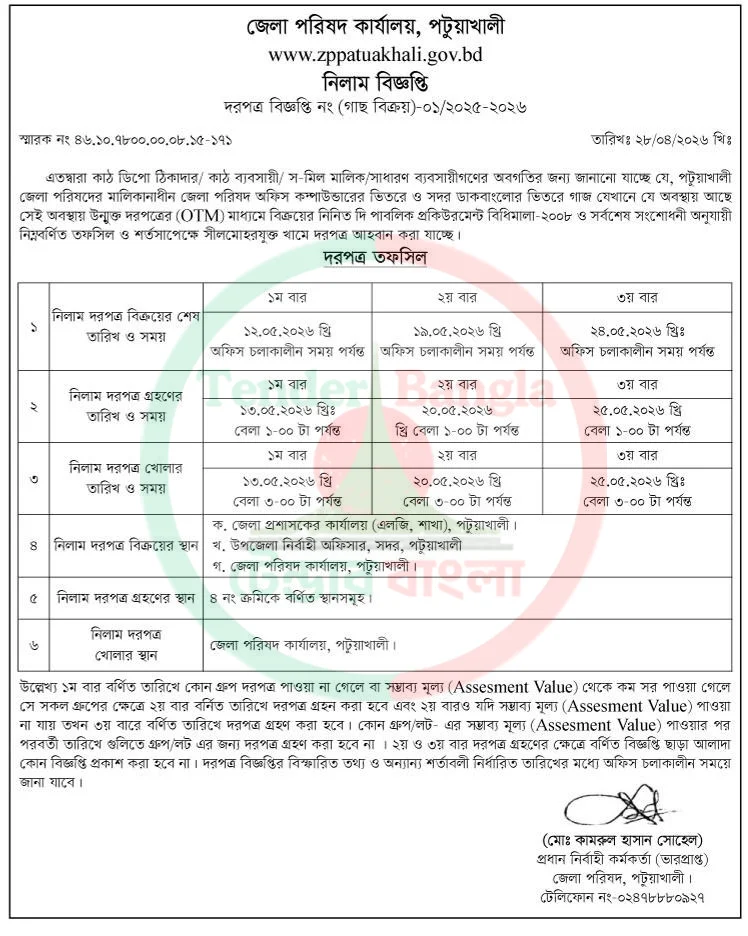 Title: বিভিন্ন গাছ নিলাম বিজ্ঞপ্তি জেলা পরিষদ
